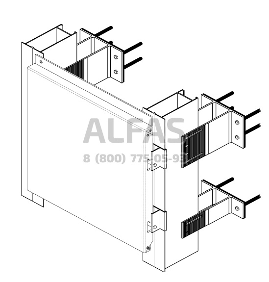 Целью фасадной системы является объединение всех элементов фасада в единое целое.Система состоит из несущих кронштейнов, монтируемых в стену при помощи дюбелей непосредственно к несущей конструкции и профилей, устанавливаемых на кронштейны, к которым с помощью кляммеров, салазок или других крепежных элементов прикрепляется облицовочный материал. Фасадная система равномерно распределяет нагрузку по всей плоскости, поэтому конструкция не имеет ограничений по высоте.