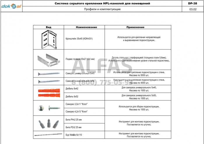 Комплектующие для крепления металлокассет