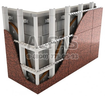 В системе крепления Альт-фасад 05 используются шины, благодаря которым на систему можно монтировать плиты из искусственного камня.