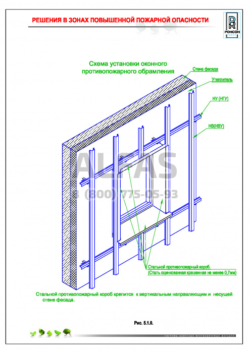 Возможна система крепления как по всей поверхности стены, так и исключительно в межэтажные перекрытия.